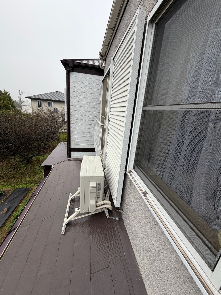先日のエアコン取り付け工事はツートンカラーの外壁のお宅への設置でした。
