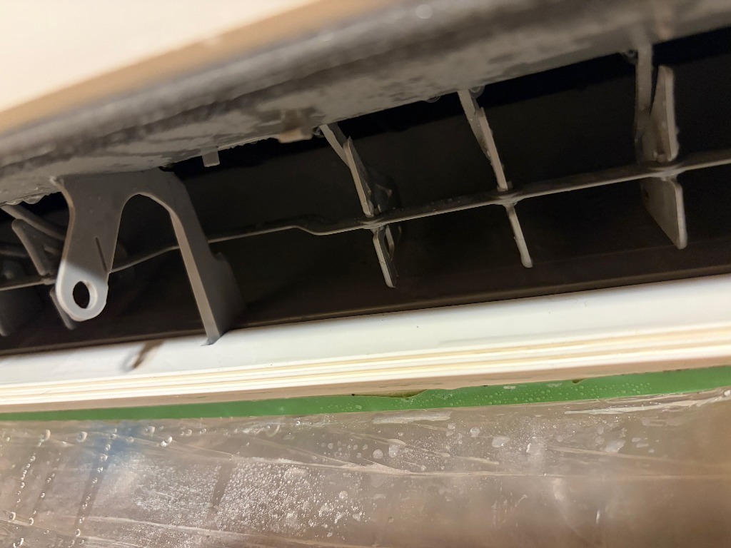 エアコンの取り付け位置は、コンセントと壁の間がギリギリでそこしかありません。