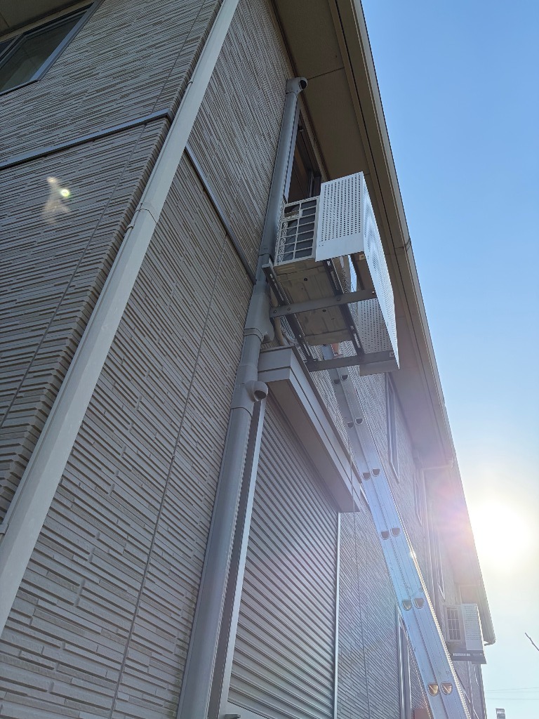 先日は知多市で、配管が庇を通しているエアコン取り付け工事がありました。