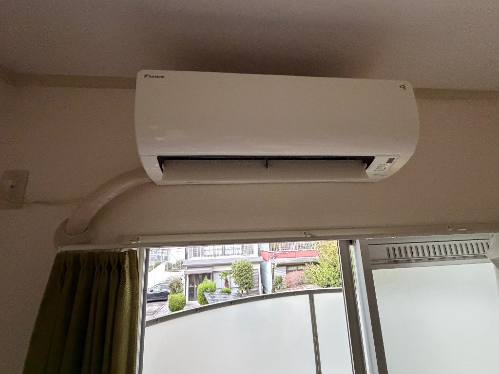 先日のエアコン取り付け工事は、名古屋市内でマンションの難工事でした。