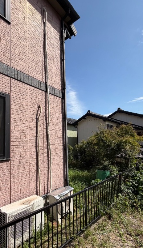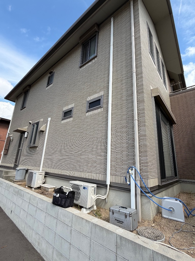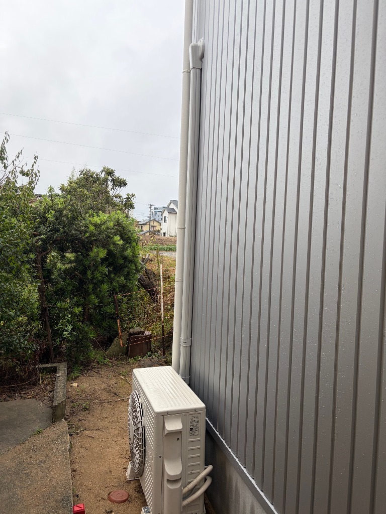 先日は知多市で、配管が庇を通しているエアコン取り付け工事がありました。