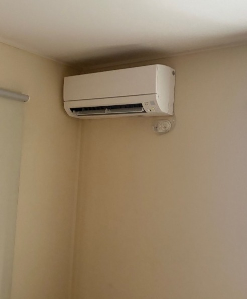 エアコンの取り付け位置は、コンセントと壁の間がギリギリでそこしかありません。